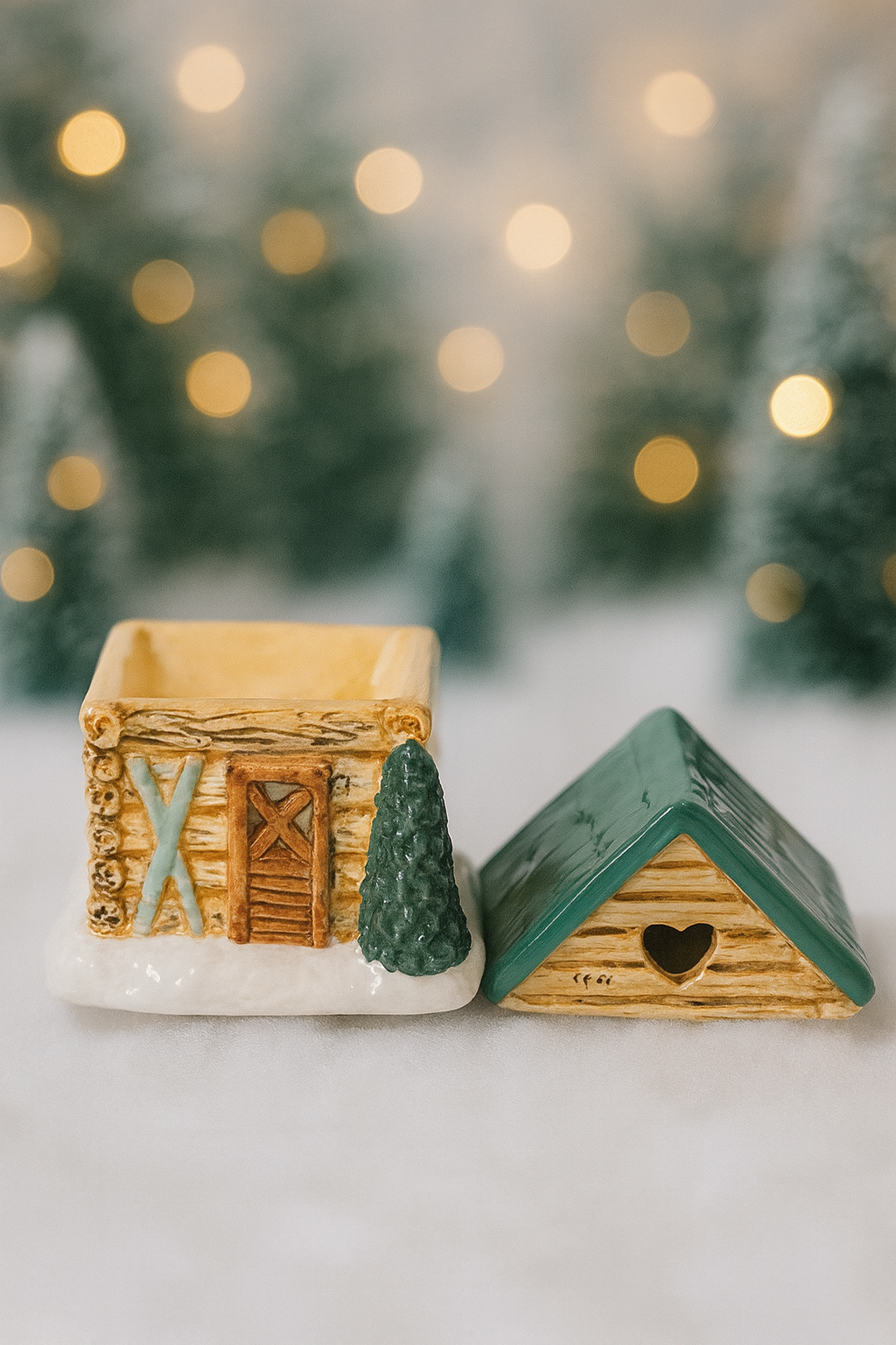 Brûle-parfum en céramique émaillée inspiré d’un chalet de montagne enneigé. Parfait pour vos fondants parfumés et huiles de diffusion pour une ambiance cocooning et hivernale.